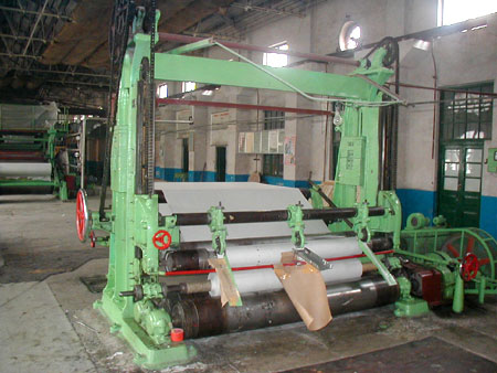 高速?gòu)?fù)卷機(jī),用于將紙機(jī)上初步卷成的原紙卷進(jìn)行縱切,復(fù)卷成符合寬度和緊度要求的成品紙卷。